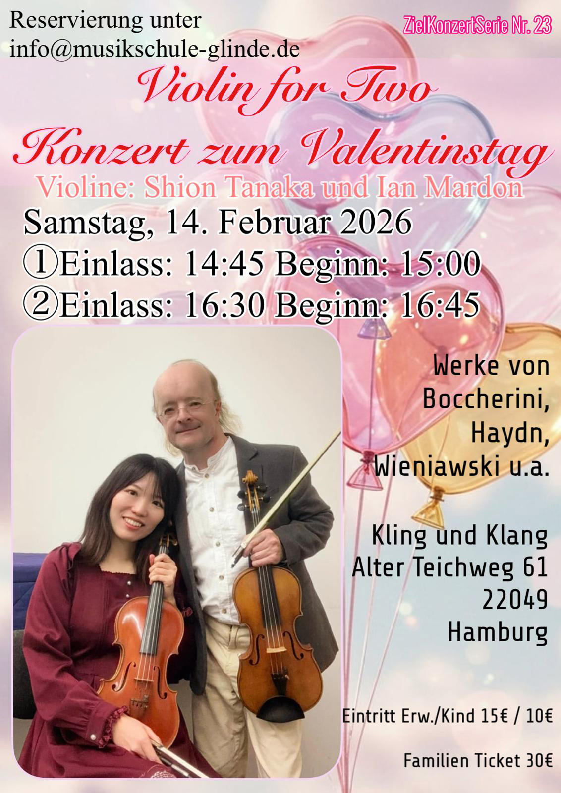 2 Konzerte mit dem Violin-Duo Shion Tanaka und Ian Mardon.